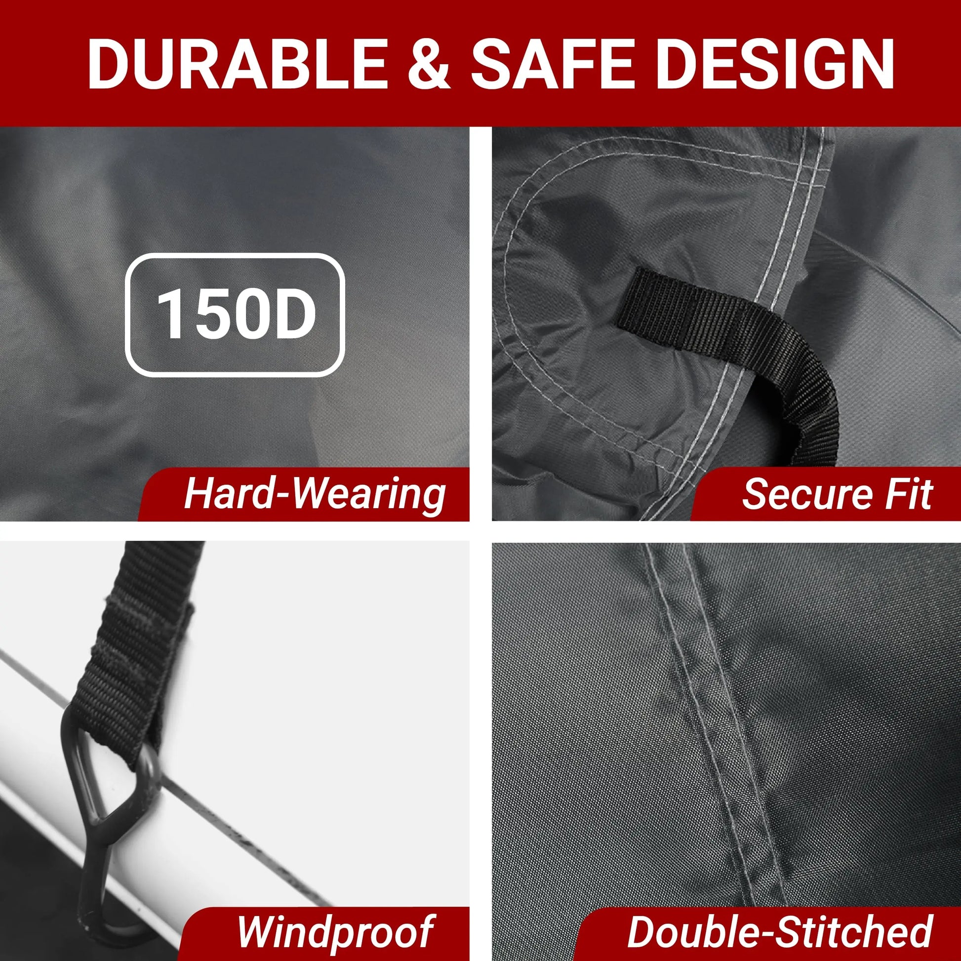 - Breathable Material: Minimises condensation buildup beneath the cover for added protection.