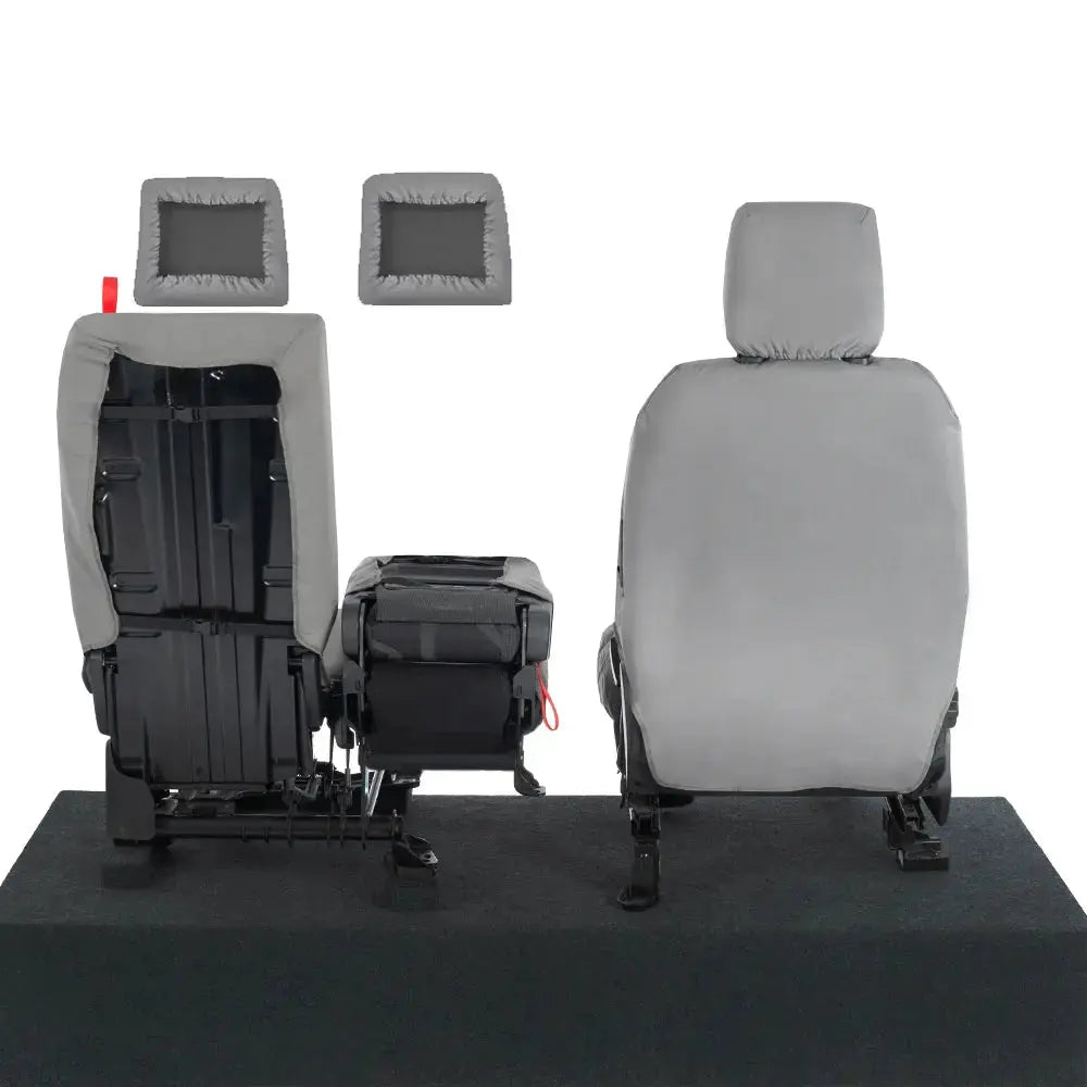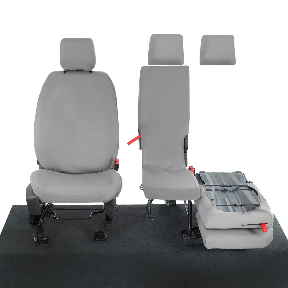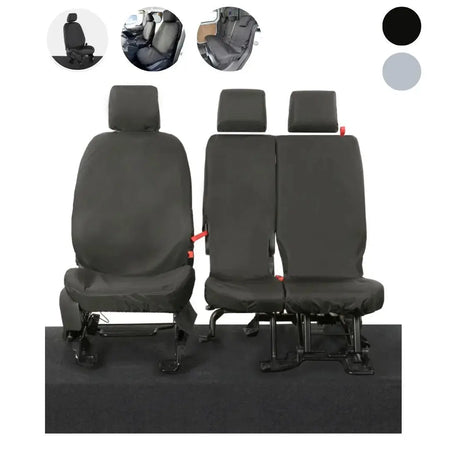 Cover Sets: Driver only (2014 onwards), Front (single/single NO armrests - 2014 Onwards), Front (single/single WITH armrests - 2018 Onwards), Front (single/double) (2014 onwards), Rear (2018 onwards), Front & Rear (NO armrests - 2018 Onwards)Colours: Black, Grey
