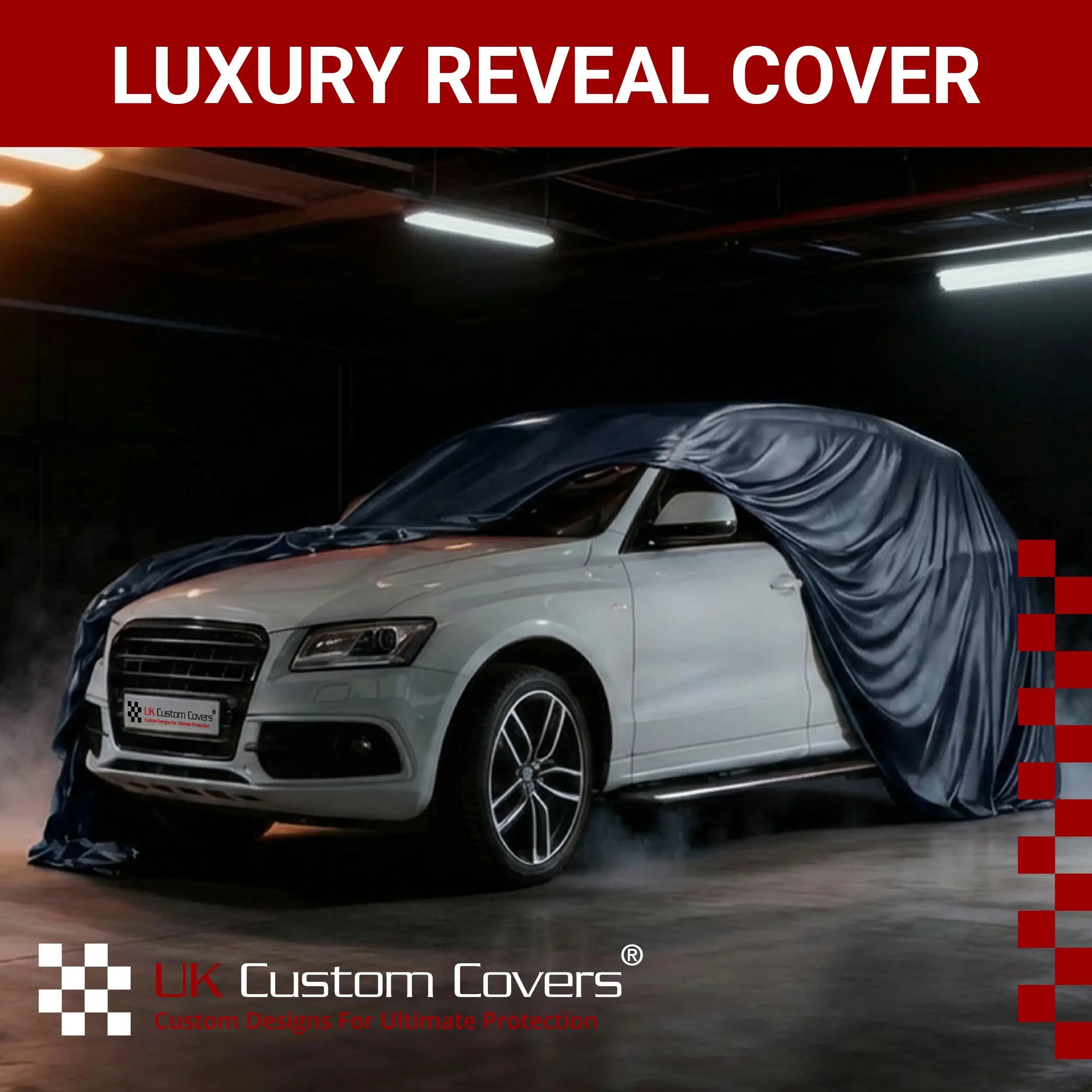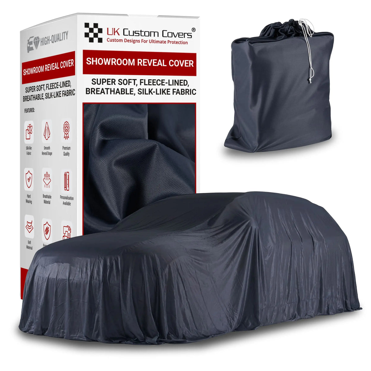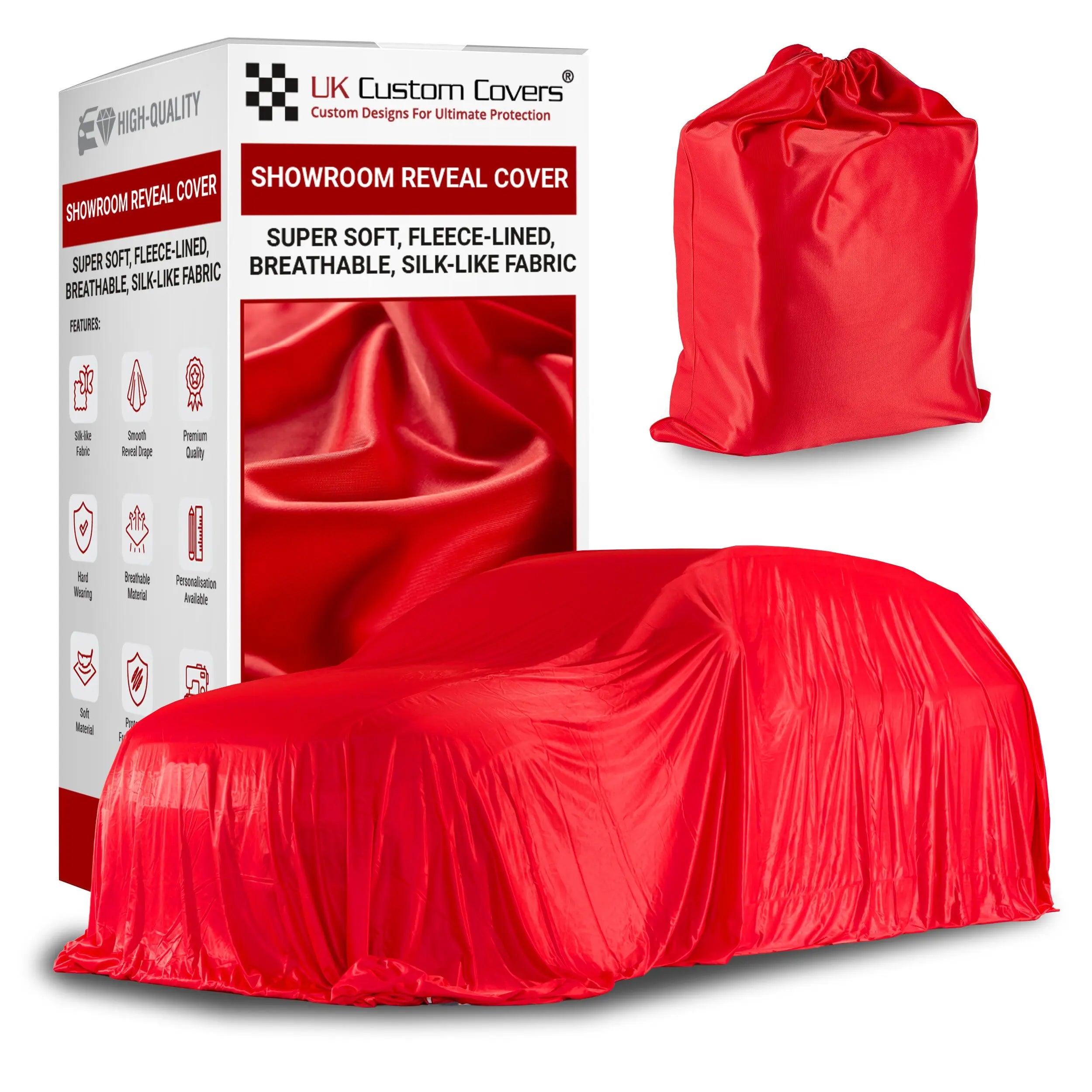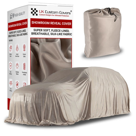 Specifically crafted for showroom environments, UK Custom Covers' Showroom Reveal Covers offer a luxurious fleece lining that ensures exceptional softness and breathability. These covers provide a sleek, elegant drape designed to enhance the dramatic unveiling of your vehicle, showcasing it in the best possible light.