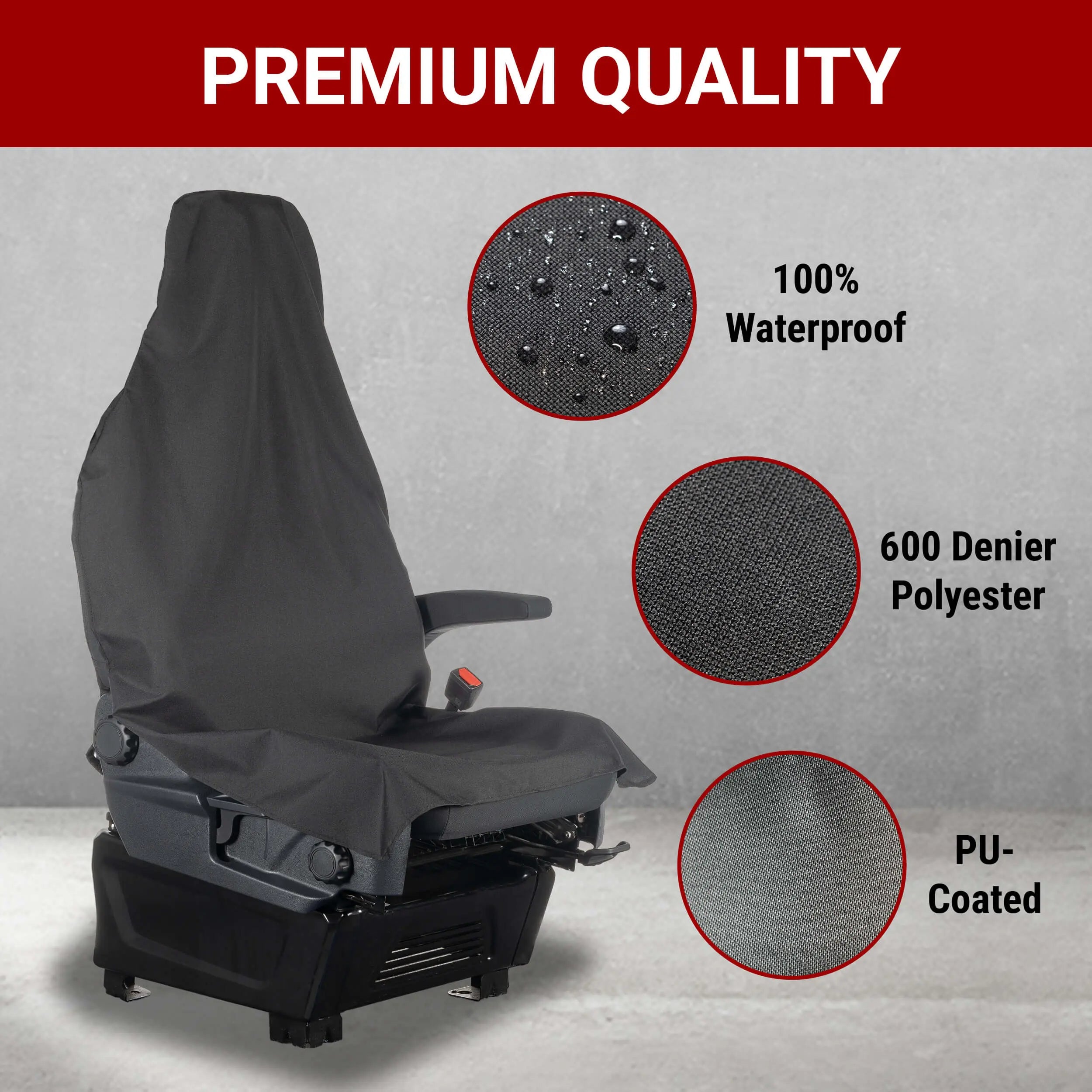 Our PU seat covers are made from washable 600 denier polyester with cotton backing for comfort.