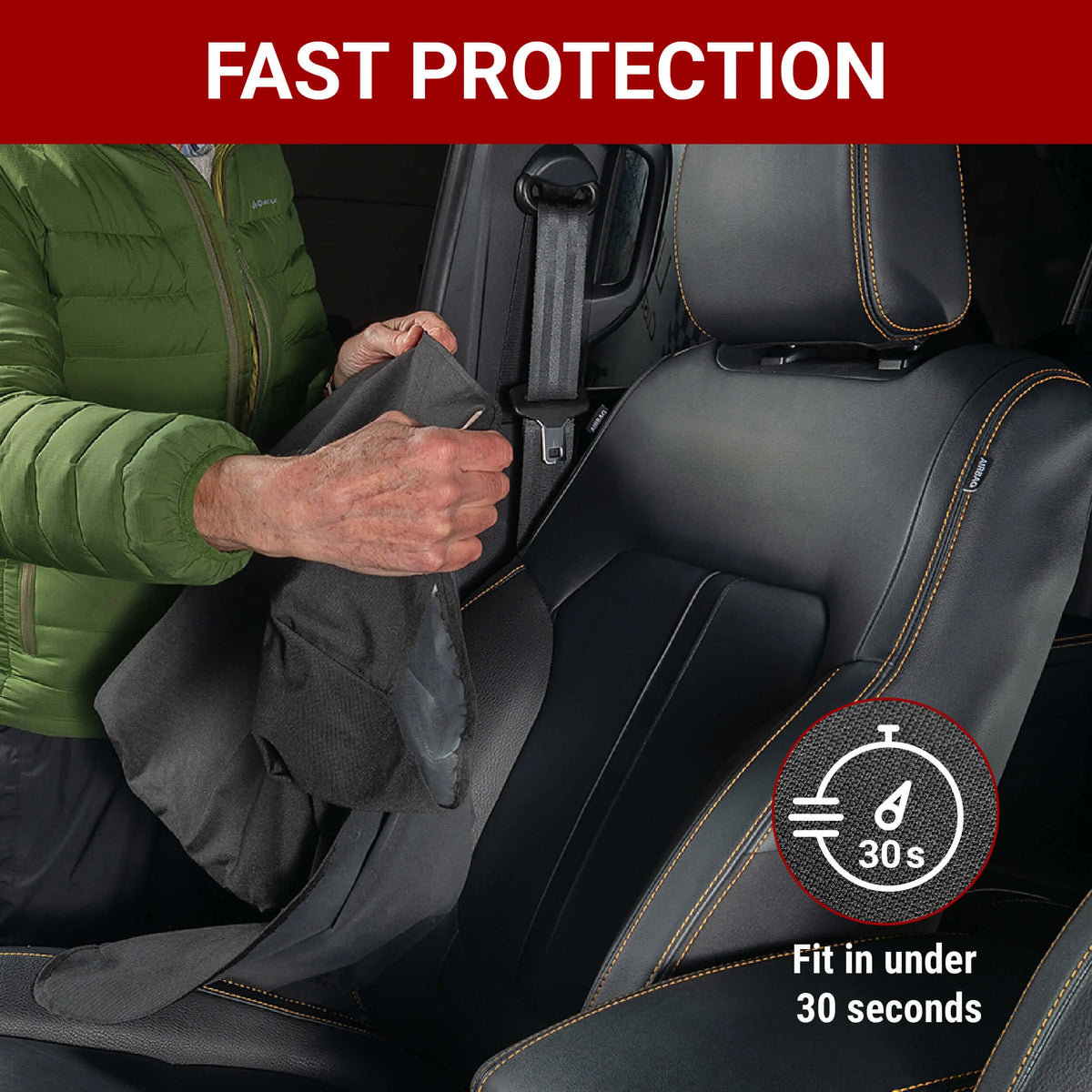 Our new universal quick-fit car seat cover provides instant protection against spills, dirt, scratches, and everyday wear. Designed for busy families, pet owners, and anyone who wants a clean, worry-free interior, these quick-fit covers install in under 30 seconds, so your seats are protected before messes happen. Durable, lightweight, and always ready when you need it, this cover makes everyday driving simpler, cleaner, and stress-free.