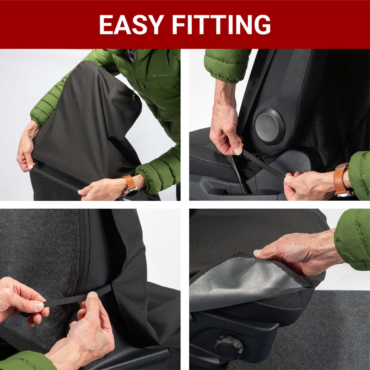 All seat covers are tailored and fully waterproof.